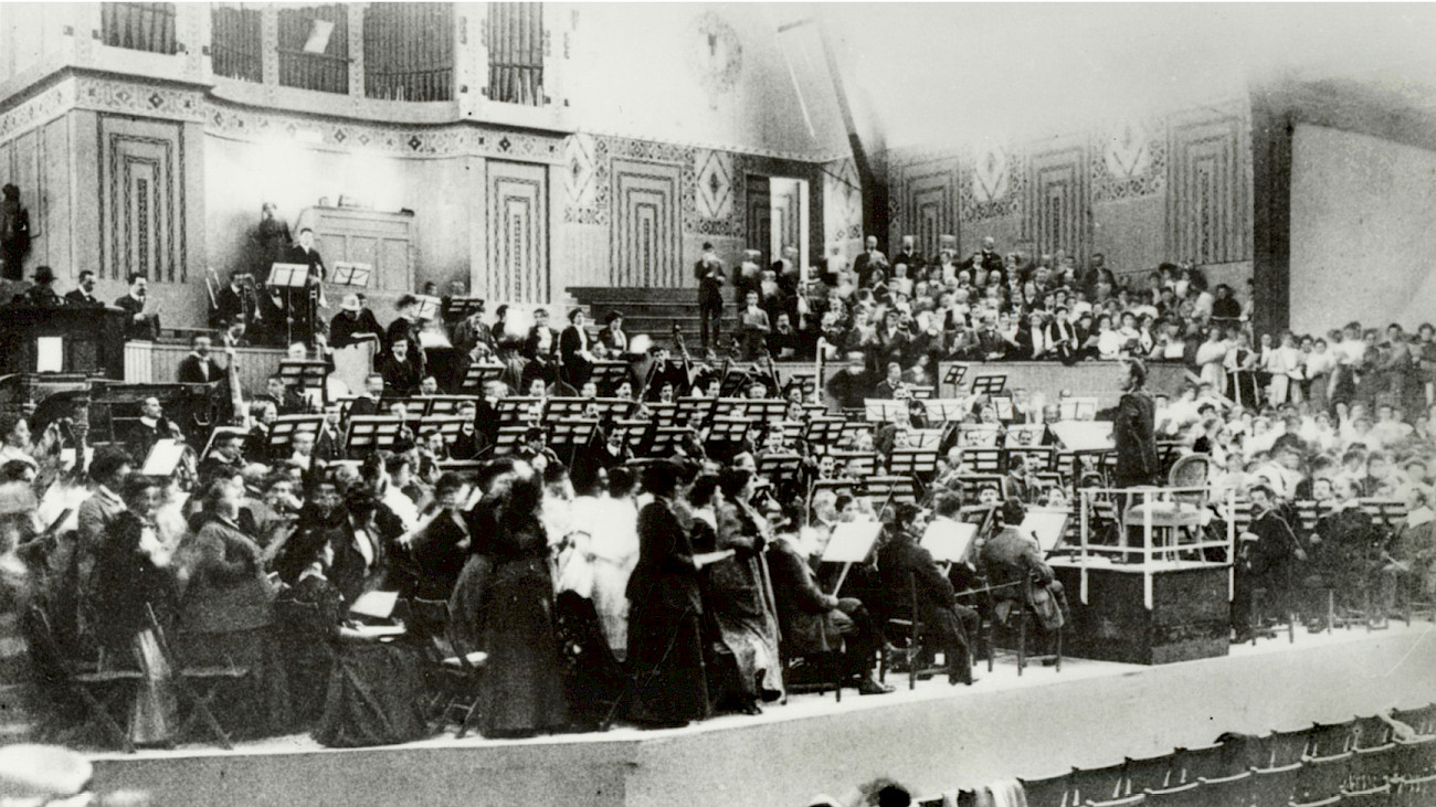 Neue Musik-Festhalle München, 1910: Gustav Mahler leitet eine Probe für die Uraufführung seiner Sinfonie Nr. 8. (Foto: Lebrecht Music Arts / Bridgeman Images)