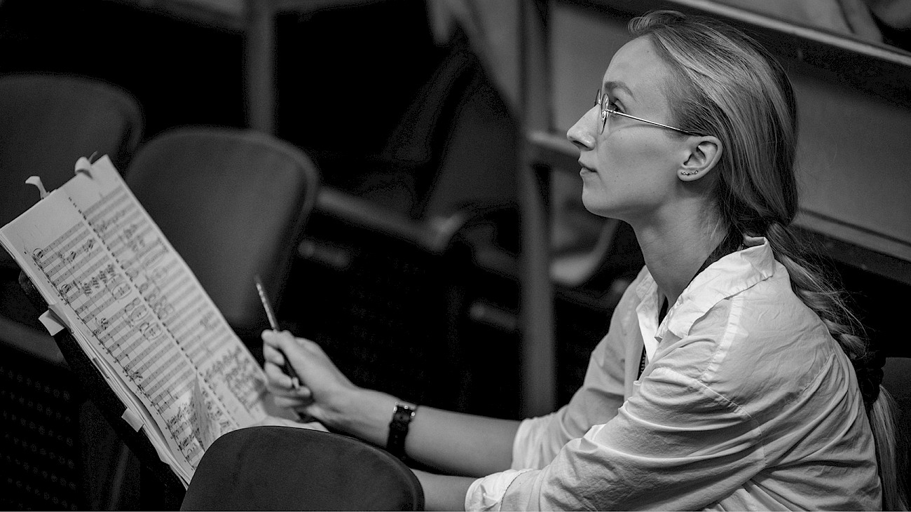 Jeder Tag als Assistant Conductor ist anders: Mal hört ihr vom Saal aus mit offenen Ohren zu, mal leitet ihr eine Akustikprobe oder einen Workshop, dann seid ihr Detektiv und untersucht verschiedene Notenausgaben. Lasst euch voll darauf ein – mit aller Spontaneität.