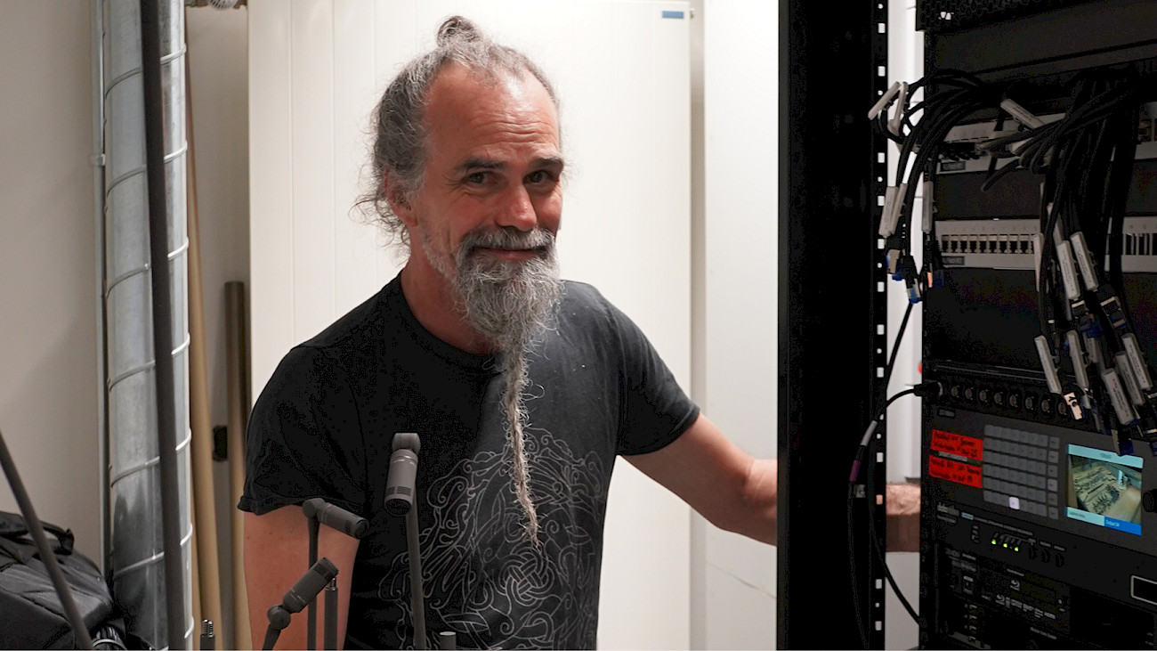 07:15 Vom Computer aus kontrolliert er unter anderem die Lüftung. Während der Konzerte darf sie wegen des Lärms nicht zu stark eingestellt sein; ansonsten geht es darum, in Zusammenarbeit mit den Verantwortlichen von der Kongresshaus-Stiftung (KSH), der Vermieterin, eine möglichst günstige Balance von Temperatur und Luftfeuchtigkeit zu erreichen: «Im Sommer ist das ein echtes Problem. Im Winter aus gegenteiligen Gründen ebenfalls.»