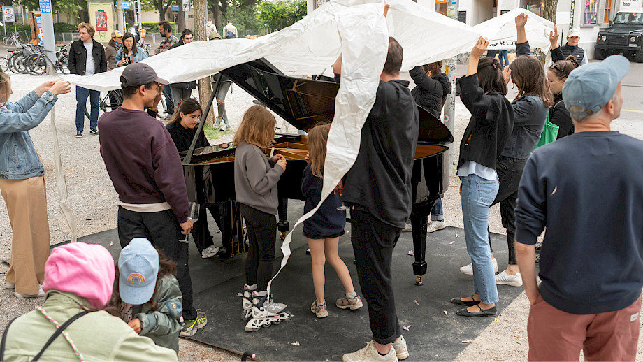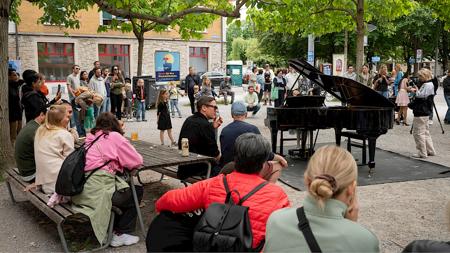 Kinder und Erwachsene, Profis und andere Talente setzten sich am Brupbacherplatz hinter unseren Flügel.