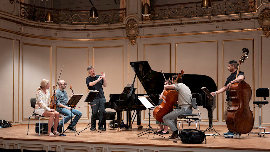 Am Sonntag nach der Saisoneröffnung war Thomas Adès in der Reihe Literatur und Musik (zusammen mit dem Schauspieler Robert Hunger-Bühler) gleich noch einmal zu erleben – und zwar nicht nur als Komponist, sondern auch als Redner und Pianist. Wie intensiv er sich zusammen mit unseren Musiker*innen auf dieses Konzert vorbereitet haben, sehen Sie in dieser abschliessenden Fotostrecke.