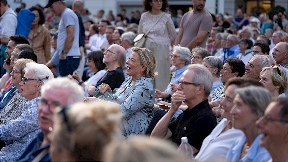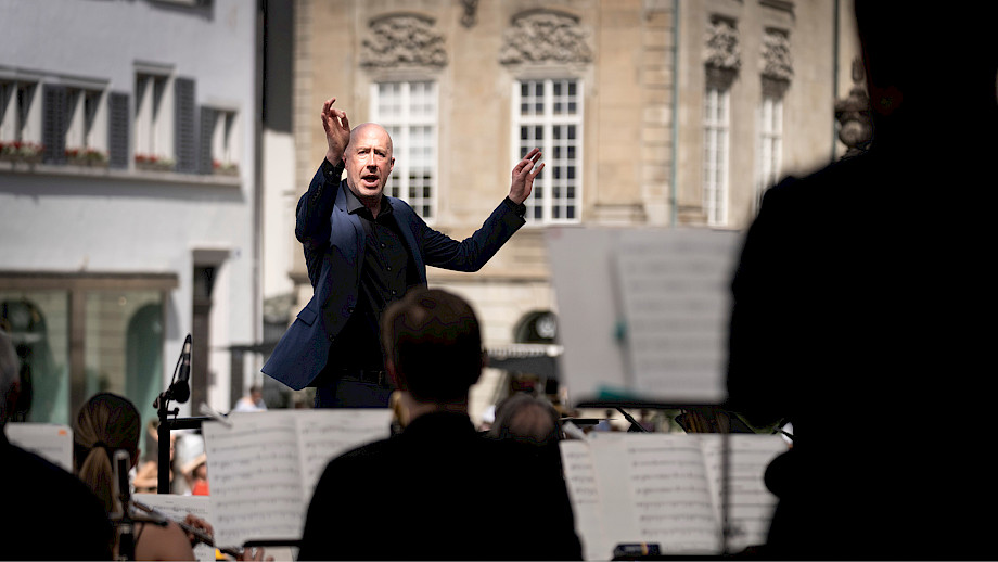 Auf dem Programm standen mit Griegs «Peer Gynt» Suite Nr. 1 und Dvořáks Sinfonie «Aus der Neuen Welt» zwei Repertoire-Hits, die so viel Publikum anlockten, dass die Security den Platz absperren mussten: Mehr als 3500 Menschen aufs Mal durften sich aus Sicherheitsgründen nicht auf dem Münsterhof versammeln. So hörten einige halt von ausserhalb der Absperrung her zu …