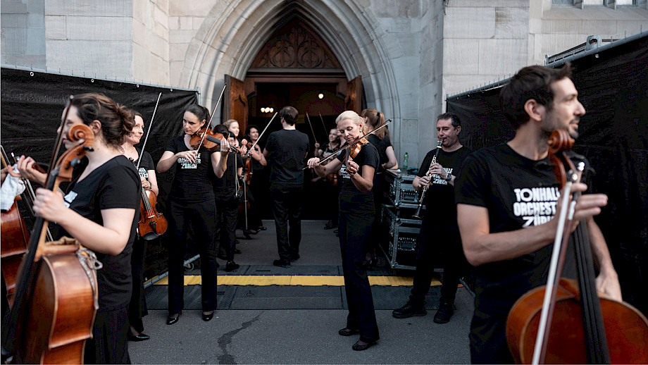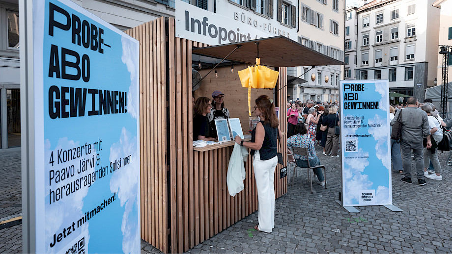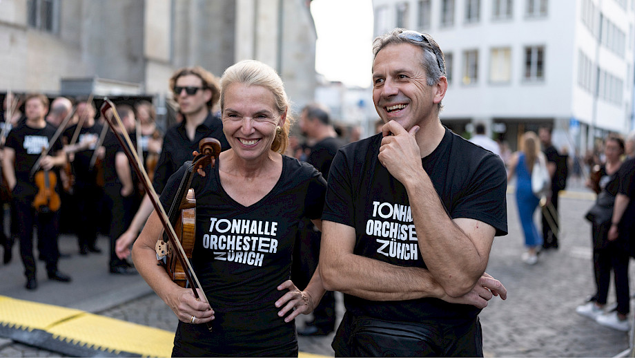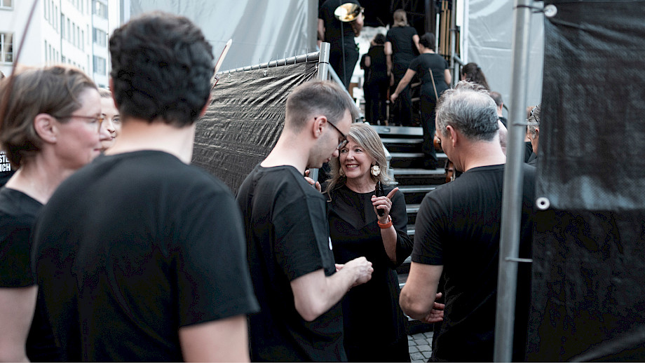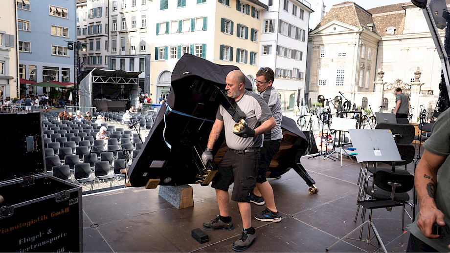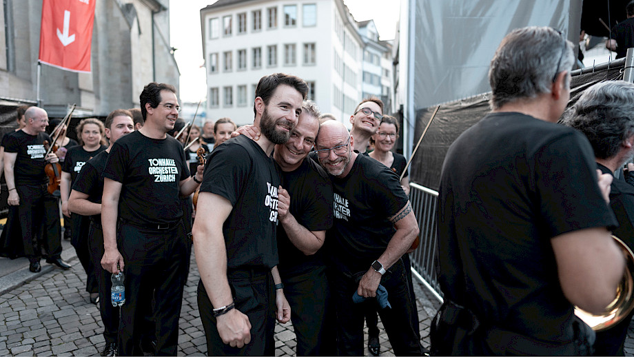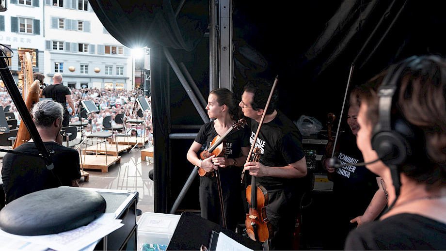 Das Kernteam war an den beiden Tagen fast rund um die Uhr auf dem Münsterhof anzutreffen, viele weitere haben geholfen – Mitarbeitende der Tonhalle-Gesellschaft Zürich, Mitglieder vom klubZ und andere Freiwillige. Sie schwitzten im Info-Point, beantworteten Fragen auf dem Platz, betreuten den Einlass zur Musikergarderobe im Fraumünster, organisierten die Bühnenauftritte, unterstützten alle, die Unterstützung brauchten, räumten auf – und stiessen spätnachts auf dem leeren Platz mit dem verbliebenen Bier auf den gelungenen Anlass an.