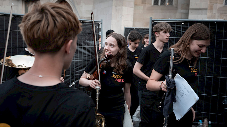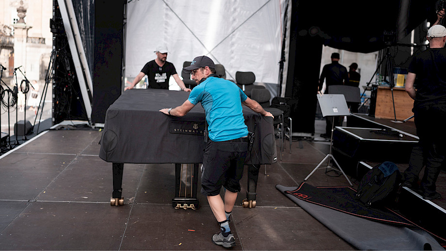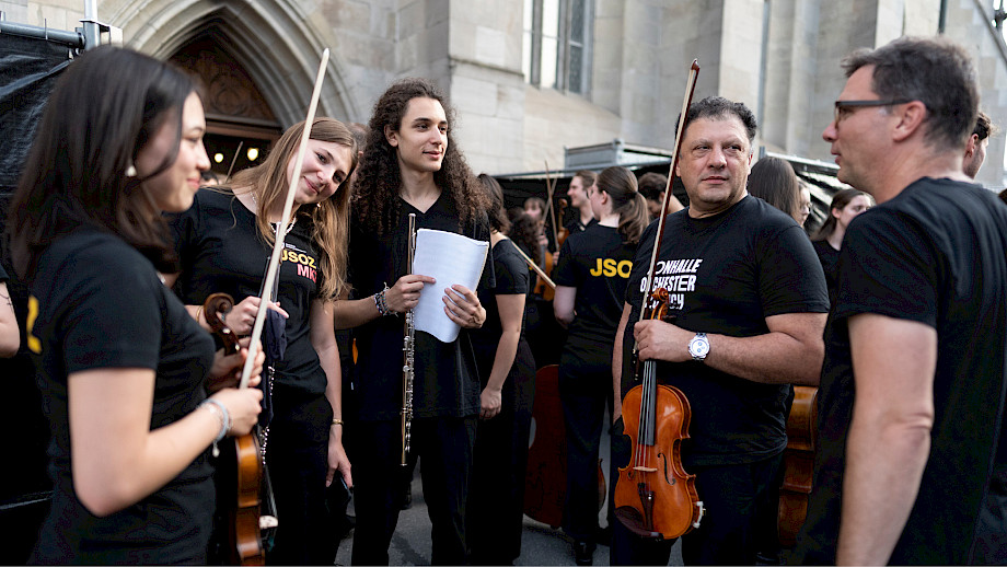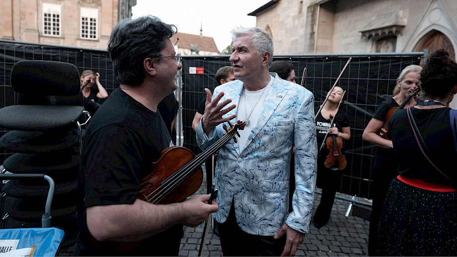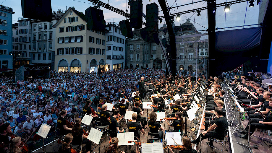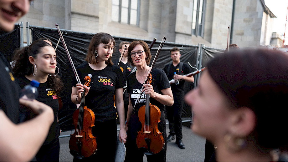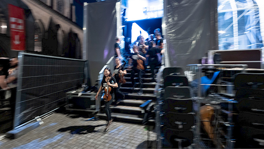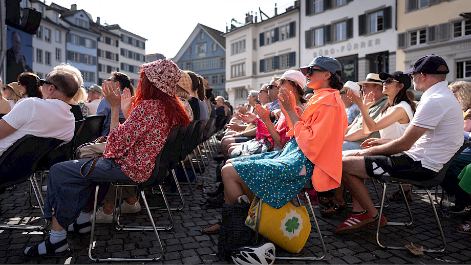Das Kernteam war an den beiden Tagen fast rund um die Uhr auf dem Münsterhof anzutreffen, viele weitere haben geholfen – Mitarbeitende der Tonhalle-Gesellschaft Zürich, Mitglieder vom klubZ und andere Freiwillige. Sie schwitzten im Info-Point, beantworteten Fragen auf dem Platz, betreuten den Einlass zur Musikergarderobe im Fraumünster, organisierten die Bühnenauftritte, unterstützten alle, die Unterstützung brauchten, räumten auf – und stiessen spätnachts auf dem leeren Platz mit dem verbliebenen Bier auf den gelungenen Anlass an.