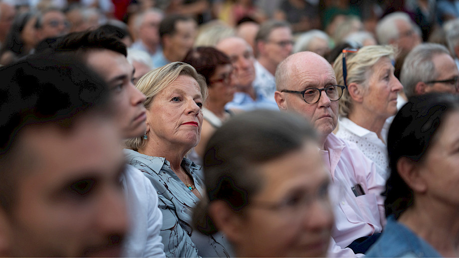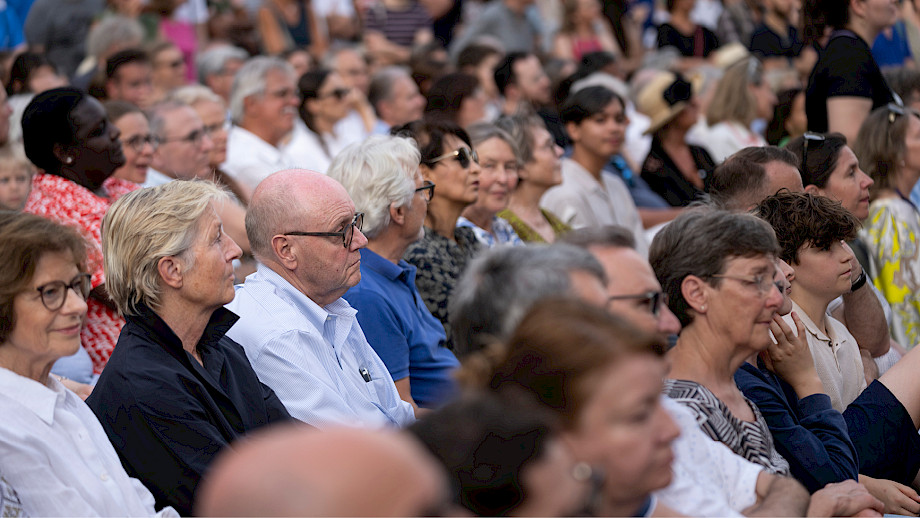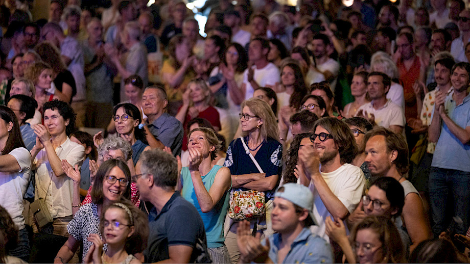 Zwei Tage lang haben wir bei unserem tonhalleAIR den Münsterhof bespielt, bei schönstem (und nachmittags auch ziemlich heissem) Wetter. Die Atmosphäre war genau so, wie wir das erhofft hatten: Nämlich gelöst, vergnügt, beflügelt – bei den Musiker*innen und dem Backstage-Team ebenso wie beim Publikum vor der Bühne und den Kindern im Brunnen. Der Fotograf Gaëtan Bally hat den Anlass begleitet; aus seinen rund 20'000 (!) Fotos zeigen wir hier in fünf Bildstrecken eine üppige Auswahl.