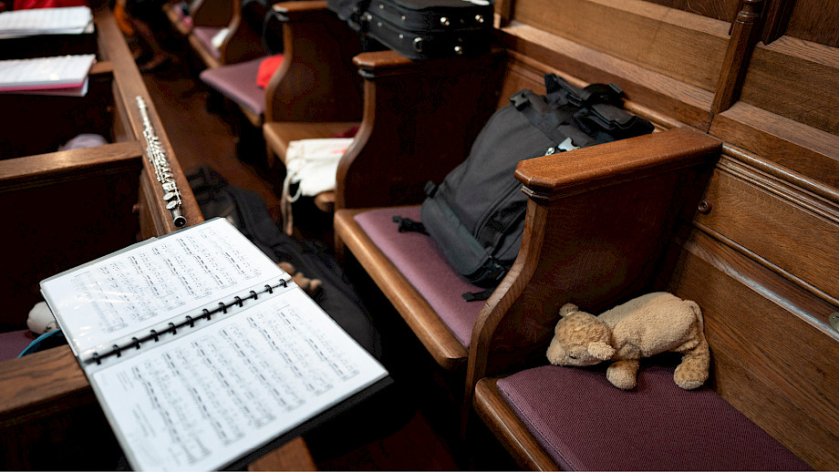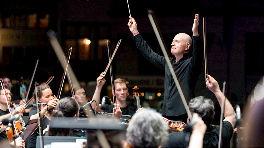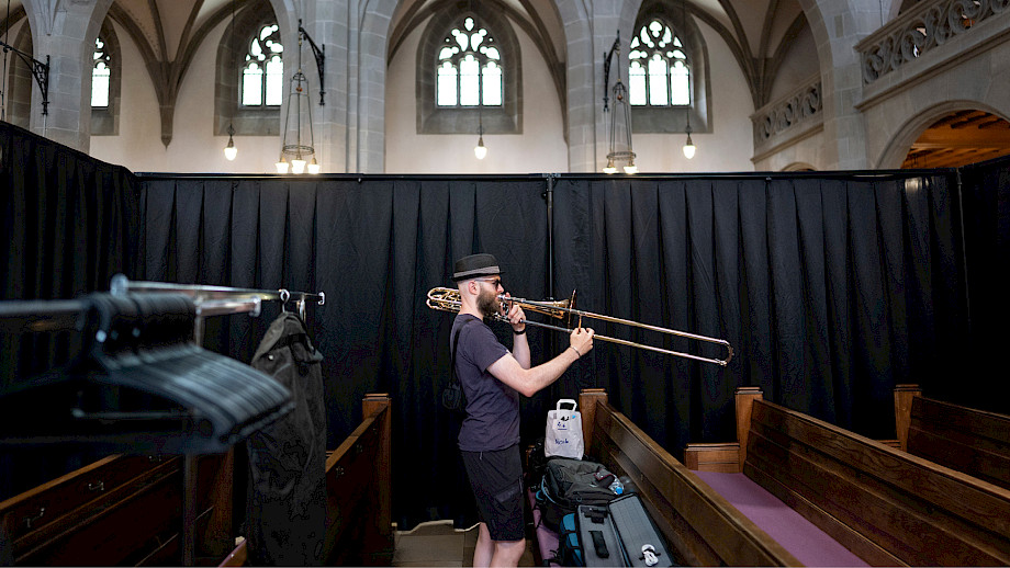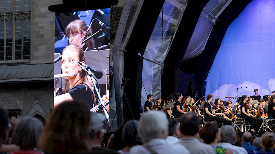 Vielleicht ist es Ihnen aufgefallen, dass die Stundenschläge der Kirchenglocken stets zwischen die Werke fielen. Das war kein Zufall, sondern Planung – das Timing mit Musik und Moderation war exakt darauf ausgerichtet. Auch sonst besteht so ein Festival aus unzähligen logistischen, technischen, kommunikativen, musikalischen und anderen Details. Seit rund einem Jahr hat das Team um Franziska Möhrle (Projektleitung), Friedemann Dürrschnabel (Orchestertechnik) und Michaela Braun (Produktion) sich in Zusammenarbeit mit externen Spezialist*innen auf diesen Anlass vorbereitet.