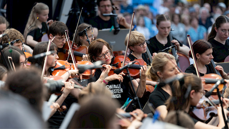 Die erste gilt dem Auftakt am Freitagnachmittag: Rund 300 Kinder von Superar Suisse und Zürcher Schulklassen haben gesungen, gespielt – und das Publikum zum Mitmachen animiert.