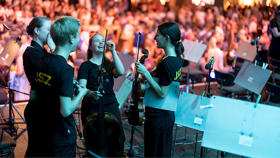 Auch zum Abschluss am Samstagabend gab es eine weitere Premiere: Zum ersten Mal dirigierte Paavo Järvi das ansonsten von unserem Posaunisten David Bruchez-Lalli geleitete Jugend Sinfonieorchester Zürich. Auch hier sassen wieder Musiker*innen aus dem Tonhalle-Orchester Zürich mit auf der Bühne – was zu einer familiären Zusammenarbeit führte: Die Bratschistin Ursula Sarnthein sass am selben Pult wie ihre Tochter Clara.