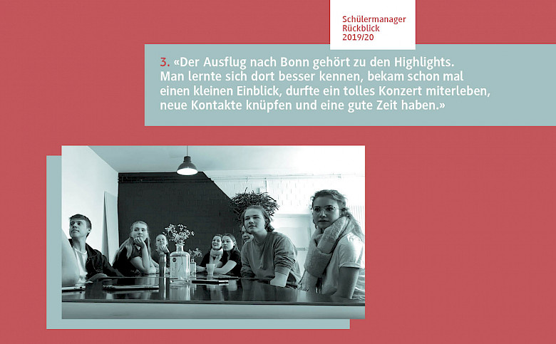 Impressionen und Rückblicke zu den vergangen Projekten der Schülermanager*innen findest du hier.