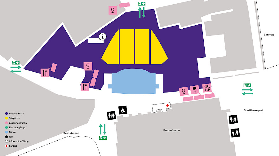 Sanitary facilities are available free of charge around the site. There is also a barrier-free/wheelchair-accessible toilet marked on the festival map.
