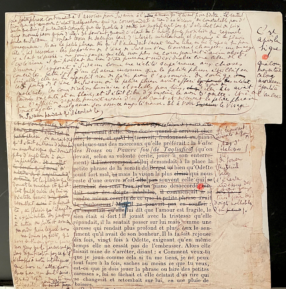 1913. Marcel Proust hat die Druckfahnen für seinen Roman «Das Flimmern des Herzens» vor sich liegen. Doch statt am eigentlich druckfertigen Text nur noch letzte Fehler auszubessern, ergänzt er neue Abschnitte, schreibt ganze Passagen um. Ein neues Buch entsteht: «Auf der Suche nach der verlorenen Zeit».