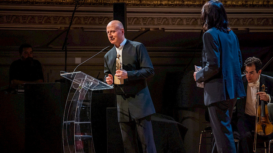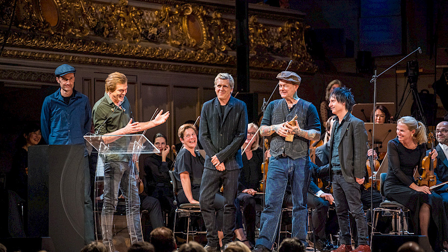 SRF-Direktorin Nathalie Wappler hat unser Orchester mit einer berührenden Laudatio geehrt und den Preis übergeben, der uns sehr freut. Paavo Järvi verdeutlichte in seinen Worten den Geist des Abends angesichts der vielfältigen Krisen auf der Welt: «Ein Sinfonieorchester ist ein gutes Beispiel, wie wir unsere Gesellschaft modellieren könnten: Hier sind dutzende Nationalitäten vertreten, hoch talentiert, professionell und voller Respekt. Nie ist es für mich als Esten wichtiger gewesen als in diesen Zeiten, ein Europäer zu sein.»