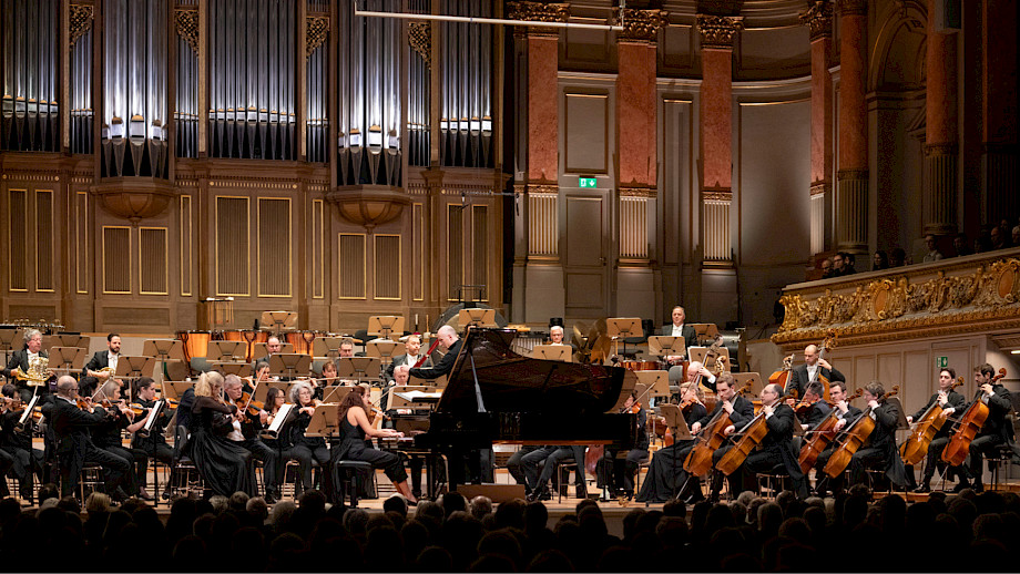 The concert opened with Robert Schumann's Piano Concerto in A minor op. 54, with Anna Vinnitskaya impressing the audience with her sensitive interpretation, which brought the depths of the work to life. The Tonhalle Orchestra Zurich, conducted by Paavo Järvi, accompanied her with precision and musical sensitivity, making the performance an intense experience. As an encore, Anna Vinnitskaya presented Mendelssohn's "Song without Words" No. 12 op. 30 (Venetian Gondola Song), which created a moment of calm and reflection with its gentle melancholy.