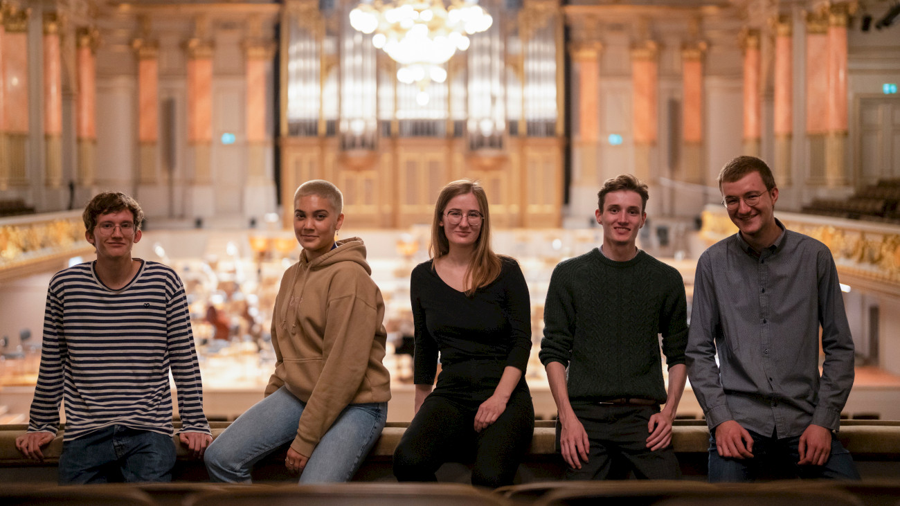 Wir sind das Schülermanager*innen-Team 2022/23 – fünf junge, musikbegeisterte Schüler*innen und Student*innen.