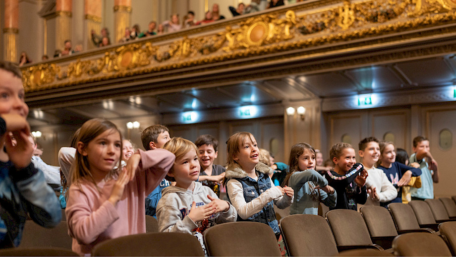 Wenn wir für dieses Projekt in die Klassen gehen und die Kinder danach zu uns kommen, erleben sie vieles zum ersten Mal. Sie lernen, wie man einem Dirigenten folgt, wie ein Sinfonieorchester funktioniert, was die verschiedenen Instrumente können. Seit ein paar Jahren organisieren wir auch einen Dirigier-Workshop für alle, da können sie ein einfaches Stück interpretieren, wie sie wollen: lustig, traurig oder wütend, schnell oder langsam. So erfahren sie, dass ein Dirigent nicht nur irgendwie vortanzt, sondern wirklich etwas bewirken kann.