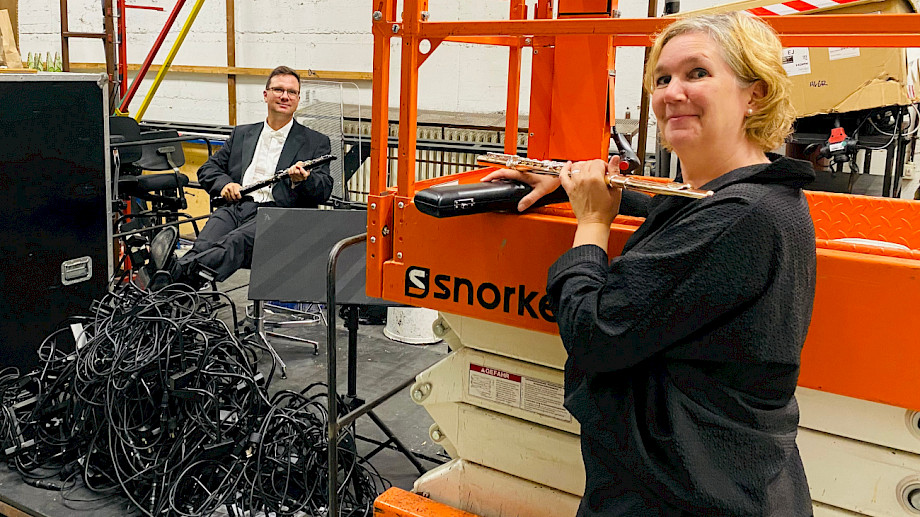 Martin Frutiger und Haika Lübcke hinter der Bühne. (Foto: Ursula Sarnthein)