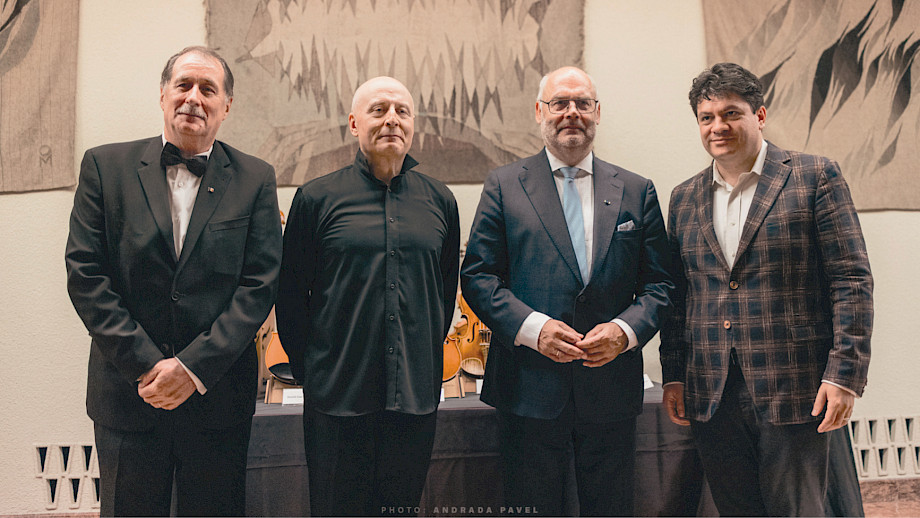 Paavo Järvi mit dem estnischen Präsidenten Alar Karis (2.v.r.) und dem Dirigenten und Festivalleiter Cristian Măcelaru (r.). (Foto: Andrada Pavel)