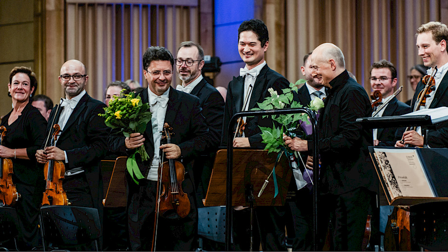 Blumen für Konzertmeister Klaidi Sahatçi und Paavo Järvi nach Bruckners 9. am zweiten Konzertabend. (Foto: Andrada Pavel)