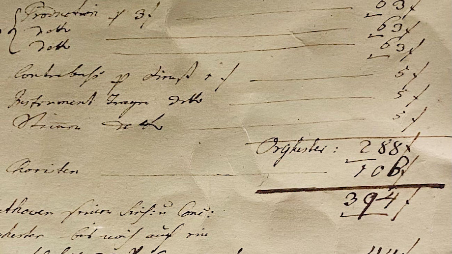 Kosten-Aufstellung für die Prager Erstaufführung von Beethovens Fünfter. Foto: Ursula Sarnthein