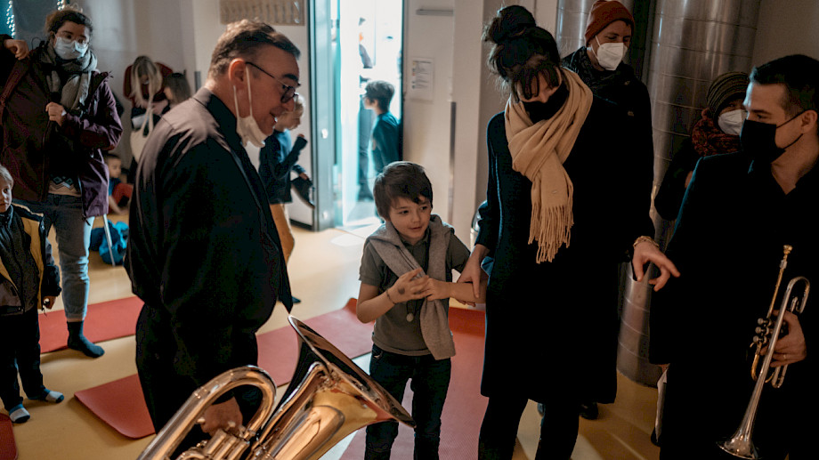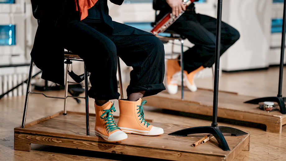 Haika Lübcke Flöte, Michael von Schönermark Fagott, Guillermo Casillas Trompete, Simon Styles Tuba, Sabine Bierich Moderation, Dramaturgie, Anna Nauer Ausstattung, Janina Kriszun Konzept Hess