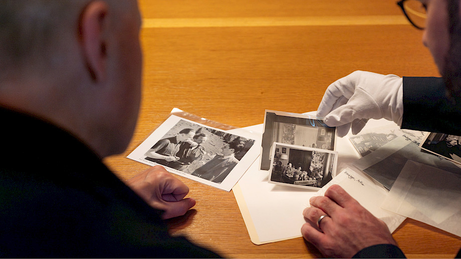 «Ich habe im Lesesaal ein paar Sachen aus der Sammlung vorbereitet. Später werden wir dann noch eine Tour durch das Haus machen», so Florian Besthorn. Er geleitet uns einige Treppenstufen hinauf, vorbei am imposanten Lichthof und zwei grossformatigen Gemälden des Stiftungsgründers und seiner Frau Maja Sacher-Stehlin, hinein in einen der Lesesäle. Hier warten auf einem langen Holztisch Sachers Dirigier-Partituren, Skizzen von Honegger, Fotos von beiden, Archivschachteln und Mäppchen aus dem reichen Quellenfundus. Die weissen Handschuhe liegen ebenfalls bereit – ganz wie es sich für eine Sammlung mit derart wertvollen Beständen gehört.