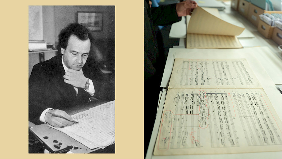 Wenn ein Teil der Geschichte zu Ende ist, fängt der andere Teil erst an: jener der Pflege eines Erbes, des möglichst freien Zugangs zu Quellenmaterial für Forschungszwecke aller Art. 1973 wurde die Paul Sacher Stiftung gegründet, zunächst mit dem Ziel, Sachers Musikalienbibliothek zu bewahren. Später wurde der Bestand zunehmend erweitert – und zwar systematisch: Vorhandenes wurde durch gezielte Ankäufe möglichst komplettiert, neue Schwerpunkte kamen hinzu. «Zur Eröffnung der Stiftung waren etwa 50 % der Sammlungen ‹schweizerische› Sammlungen. Dann wurde es aber bereits zu Sachers Lebzeiten stetig internationaler. Derzeit sind noch rund 20 % inländisch, wobei auch viele andere Sammlungen deutliche ‹schweizerische› Züge tragen, durch Aufenthalte zum Komponieren, die Zusammenarbeit mit dem Basler Kammerorchester und anderen Orchestern anlässlich Uraufführungen et cetera», erklärt Florian Besthorn auf dem Rundgang durch das Gebäude. Heute umfasst der Bestand über 120 Sammlungen von Komponist*innen sowie Interpret*innen des 20. und 21. Jahrhunderts. Das macht die Stiftung zu einem der international bedeutendsten Forschungszentren für Zeitgenössisches und die jüngere Vergangenheit.