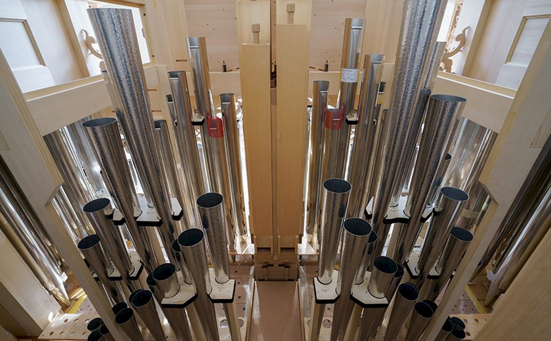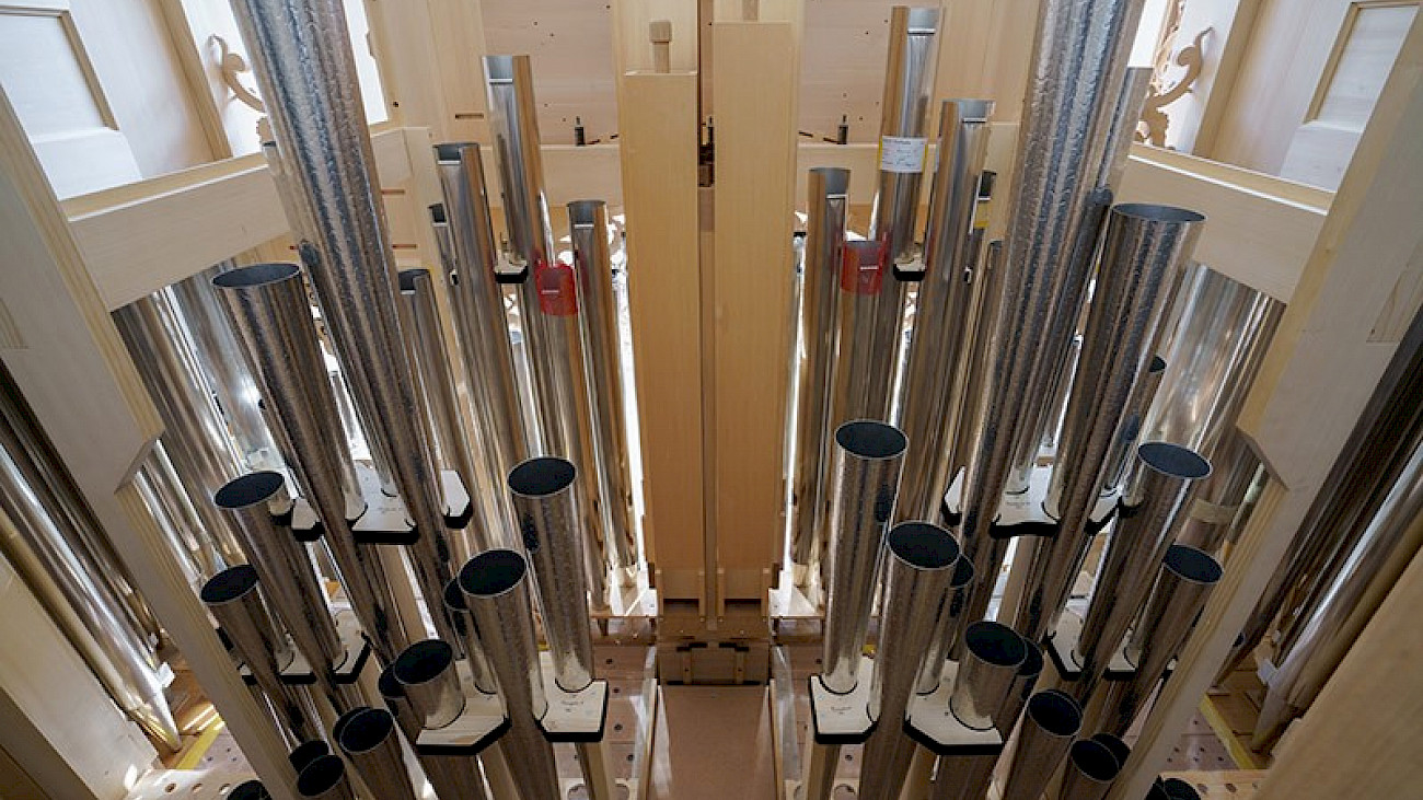 Grad ist sie fertig geworden, die neue Orgel für die Tonhalle am See, die noch mitten in den Sanierungsarbeiten steckt. Bevor sie in ihre Einzelteile zerlegt wird, bevor sie verpackt aus den Ateliers des Orgelbau Kuhn in Männedorf zum Bürkliplatz transportiert und vor Ort erklingen wird, möchten wir sie in ein paar Zahlen und Fakten vorstellen. Die neue Orgel ist eine Hommage an den Klang der Tonhalle Zürich. Wir können es kaum erwarten, diesen Klang mit Ihnen einzuweihen.