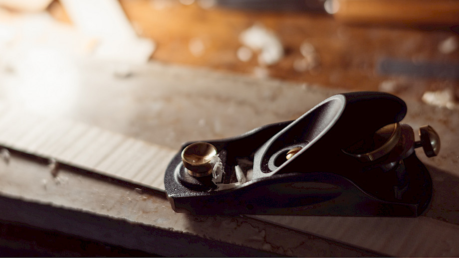Anders als bei Gitarren ist die Decke des Korpus bei Streichinstrumenten leicht gewölbt. Diese Wölbung wird sozusagen als Skulptur aus einem Brett herausgestochen: Es ist der heikelste Arbeitsschritt im Geigenbau, vieles muss stimmen, damit er gelingt. Schon zu Beginn gilt es aus Gründen der Stabilität darauf zu achten, dass die Jahrringe des Holzes senkrecht in der Wölbung stehen. Die Wölbung selbst wird dann mithilfe von Massstab und Höhenmesser ausgearbeitet.
