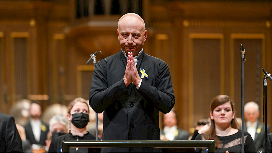 «In dieser Zeit, in der wir alle Zeugen eines derart barbarischen Aktes werden, fehlen uns im Grunde die Worte», sagte Paavo Järvi zum Publikum und zum Orchester. «Wir musizieren in tiefer Solidarität mit den Menschen in der Ukraine. Ich glaube an die Macht der Musik, der Menschlichkeit und der Liebe.»