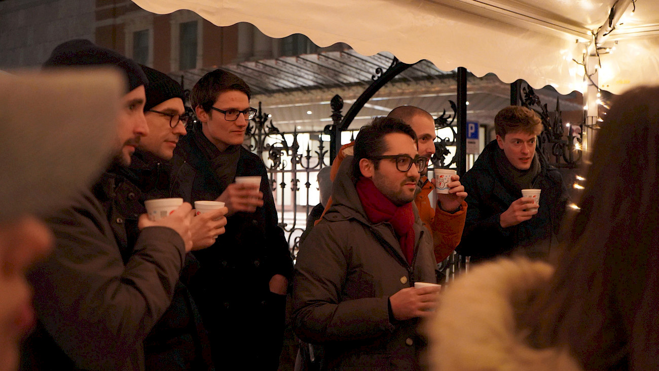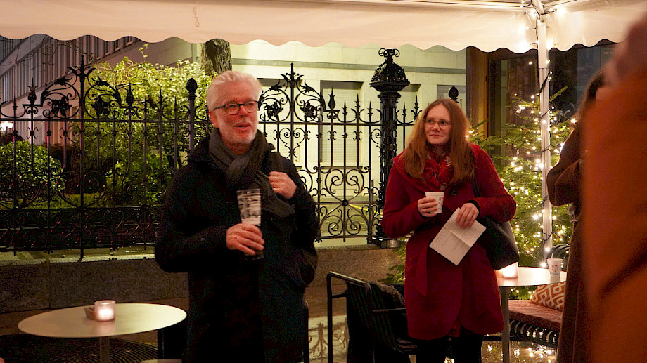 Nach dem Konzert kamen die Mitglieder zu einem Ausklang mit Glühwein zusammen, bei dem sie kurz die Gelegenheit hatten, Jukka-Pekka Saraste ein paar Fragen zu stellen. Auch hier bezeugte er einen besonderen Zugang zu Sibelius’ Werken und verriet uns seine Lieblingssinfonie: die Sinfonie Nr. 4 A-Moll op. 63.